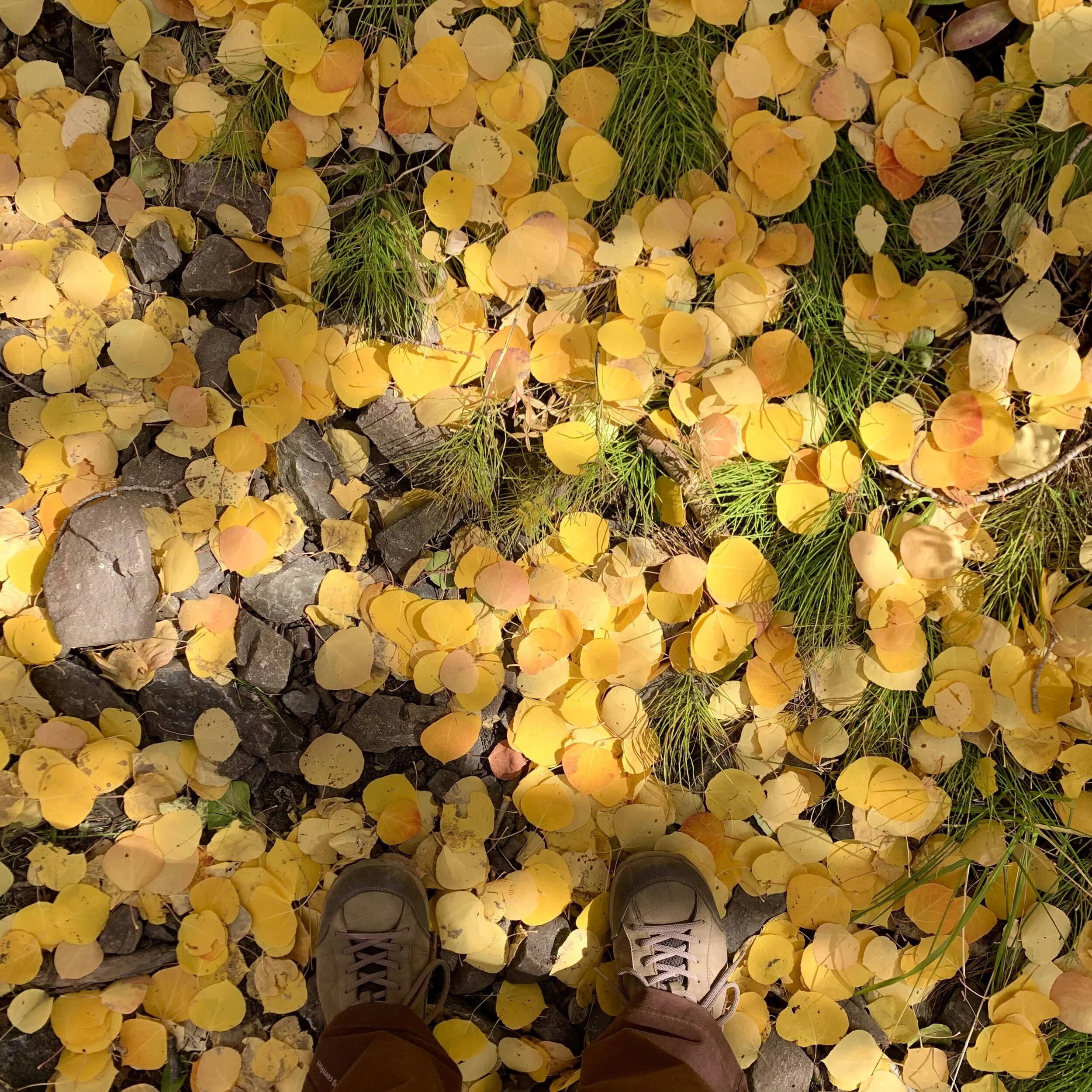 Fall is so unabashedly gorgeous. She’s letting it all go, nothing to create or protect anymore, and everything to reveal. It’s a spectacular and precious turn towards death - a thinning, a drying, a conserving. You can see through everything a bit more, and the beauty shines even brighter because expiration is imbedded inside of it. It can’t be taken for granted like hopeful spring or endless summer. The thick and tall aspens are shedding around me and I suddenly recognize my own shedding. My current forest floor is also littered, with auburn hairs, grey hairs, bleached hairs, brown hairs, silver hairs. My leaves are also falling out, my body is also thinning and drying, and my gorgeousness is also especially potent in this season of my life. Inside and out there’s an explosion of confetti in celebration of the vibrant life-force that’s left before winter. It’s an extended going away party of sorts, and nothing is held back. Why hold anything back?